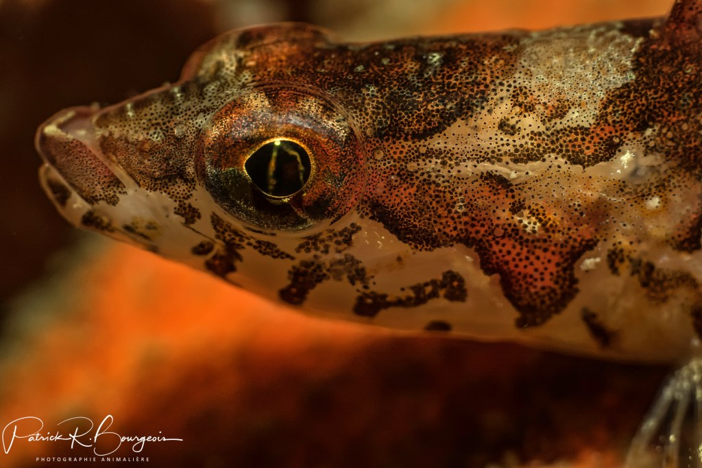Aujourd’hui, je suis bien content d’avoir pu photographier une stichée arctique comme je l’espérais depuis quelque temps. C’est-à-dire en très gros plan. Ce poisson mesure tout juste 8 ou 10 centimètres. Il est assez nerveux. Et se déplace rapidement. Il fuie les lumières de la caméra. Et l’ombre du gros plongeur. La plupart du temps. Enfin chez moi. Dire qu’il est difficile à photographier en macro est un euphémisme. Mais l’eau glaciale du jour semble l’avoir engourdi suffisamment. Au plus grand plaisir de ma caméra.