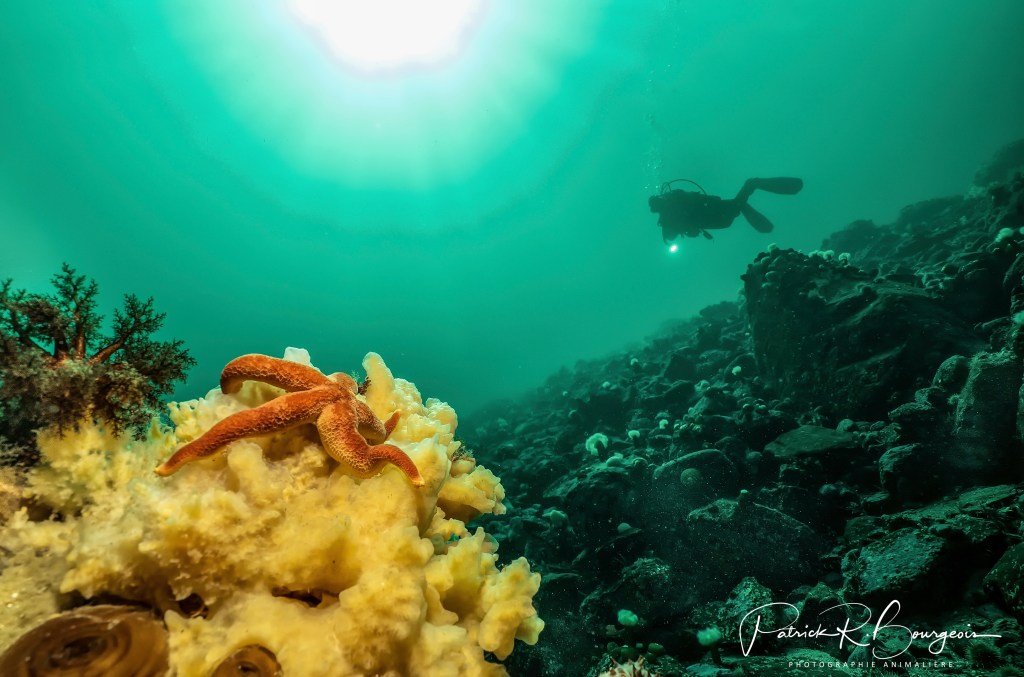 Ces jours-ci, j’avais une plongeuse d’expérience avec moi. On en a profité pour aller virer du côté de la Pointe-à-la-croix et de la Pointe-à-la-perche. C’est à environ 40 kilomètres de la marina de Baie-Comeau. On a sauté à l’eau à deux endroits où je n’avais jamais été auparavant. Et ç’a en a valu la peine!
