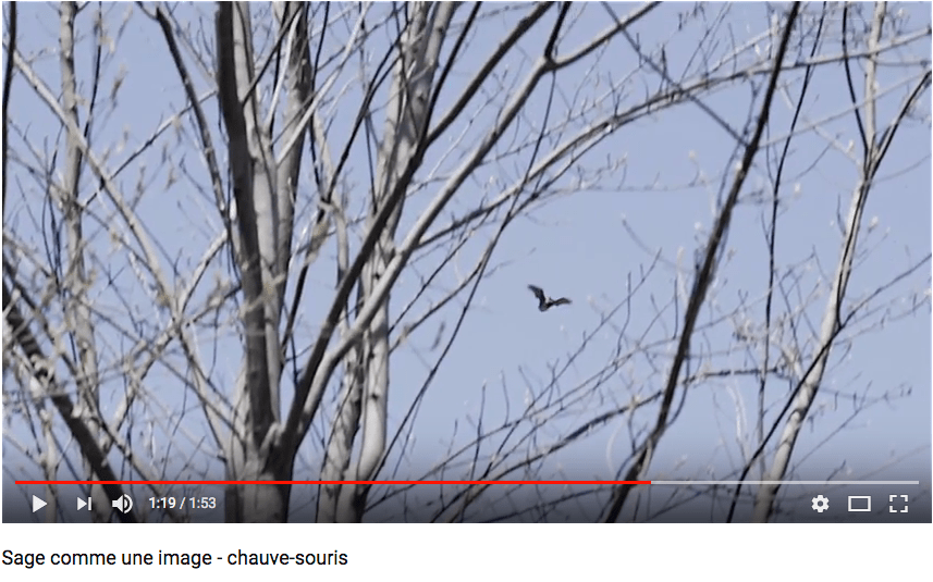 Hier, alors que la chauve-souris en question volait au-dessus de mon marais, j’ai bien tenté de la filmer. Afin que nous puissions ultérieurement l’identifier. Mais j’étais configurer pour faire des images macro. Alors le petit film qui suit est plutôt mal fait, mais on voit au moins la chauve-souris. Pas certain que ce sera suffisant, par contre, pour l’identifier.