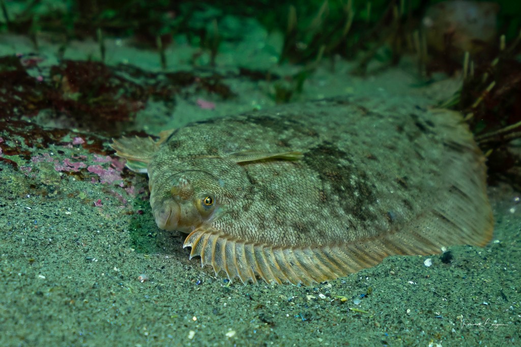 Au fil des millénaires, le poisson qu’est la plie (hippoglossoides platessoides) a découvert que la meilleure façon de tirer son épingle du jeu, c’était sur le fond de la mer. La plie s’est donc adaptée à son environnement, au point de s’aplatir et de prendre les couleurs du fond, quand besoin est.