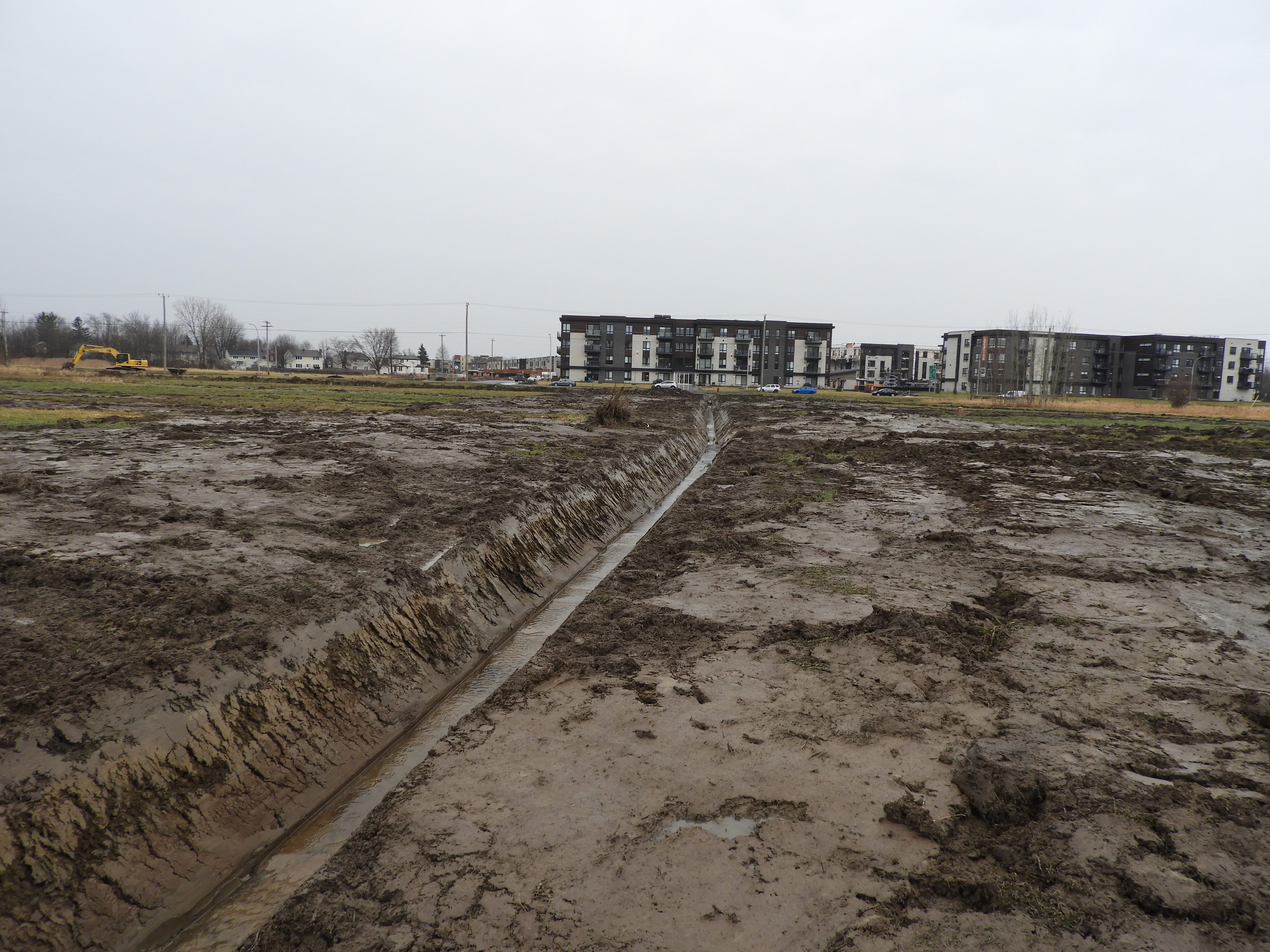 Les dommages causés, en quelques heures seulement, sont énormes. Voici des photos qui ont été prises sur le site en question. On peut observer que la végétation a été arrachée, que les étangs ont été drainés et que les sols ont été compactés par le passage de la machinerie. Et ce, sur une superficie qui fait plus d’un kilomètre de long. On se doit de bien comprendre que toutes les rainettes qui se trouvaient là, en dormance en prévision de l’hiver, ont été complètement écrabouillées par le passage dudit tracteur.