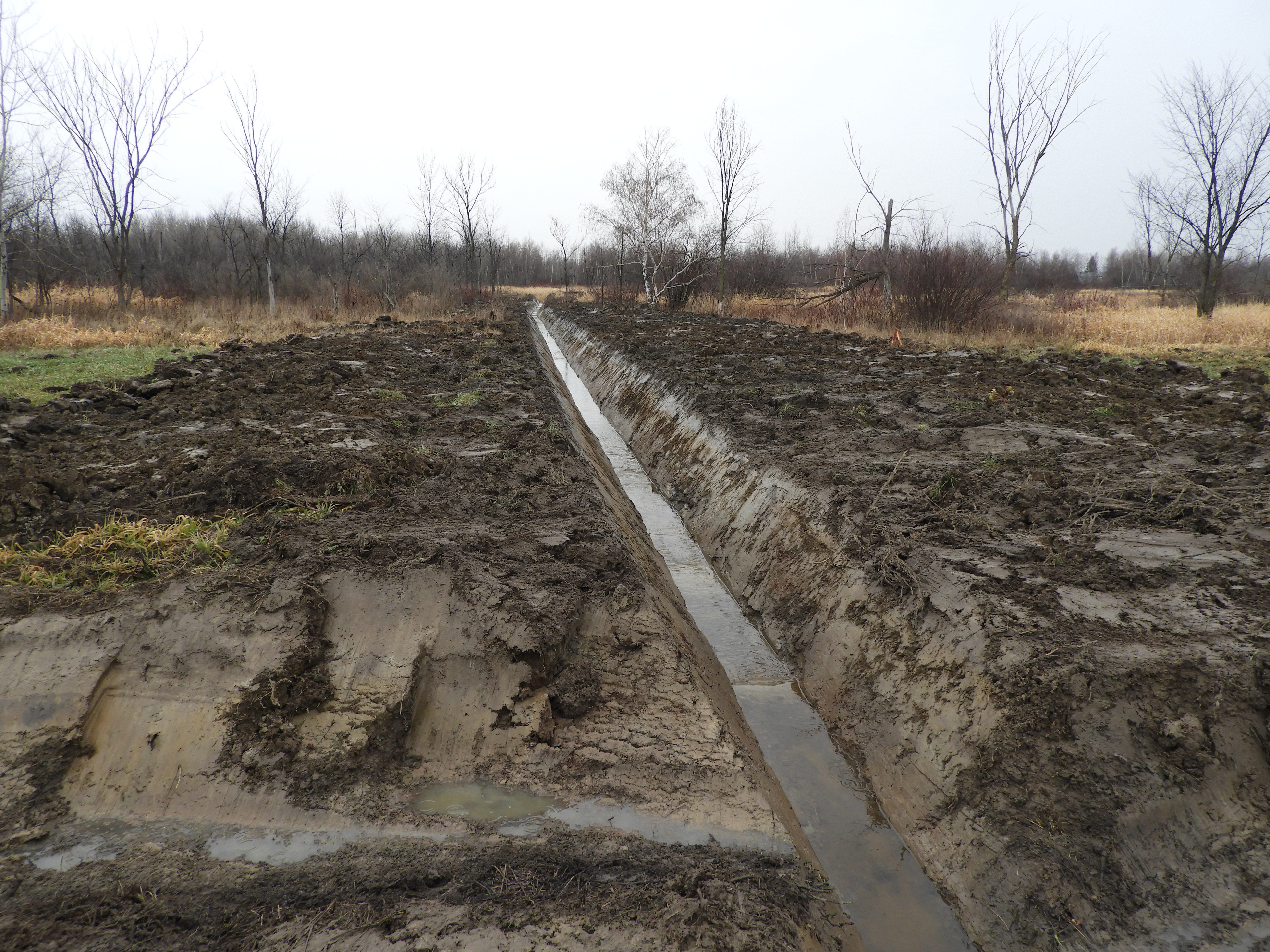 Les photos ont été prises par Tommy Montpetit, un gars qui protège la rainette faux-grillon depuis des décennies. C’est lui aussi qui est intervenu afin de faire stopper ce massacre et qui a porté plainte contre les auteurs du méfait. Comme on peut le constater sur ses photos, l’individu (il pilotait un véhicule appartenant à la compagnie Brodeur Excavations) a construit de nombreux canaux de drainage en plein coeur d’un site sensible pour la reproduction de la rainette faux-grillon. Les étangs où pouvait s’y reproduire l’ampibien menacé n’existent aujourd’hui plus à cet endroit. C’est hautement déplorable. Choquant au plus haut point!