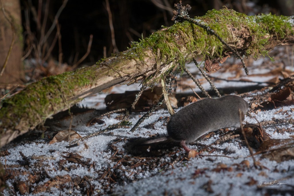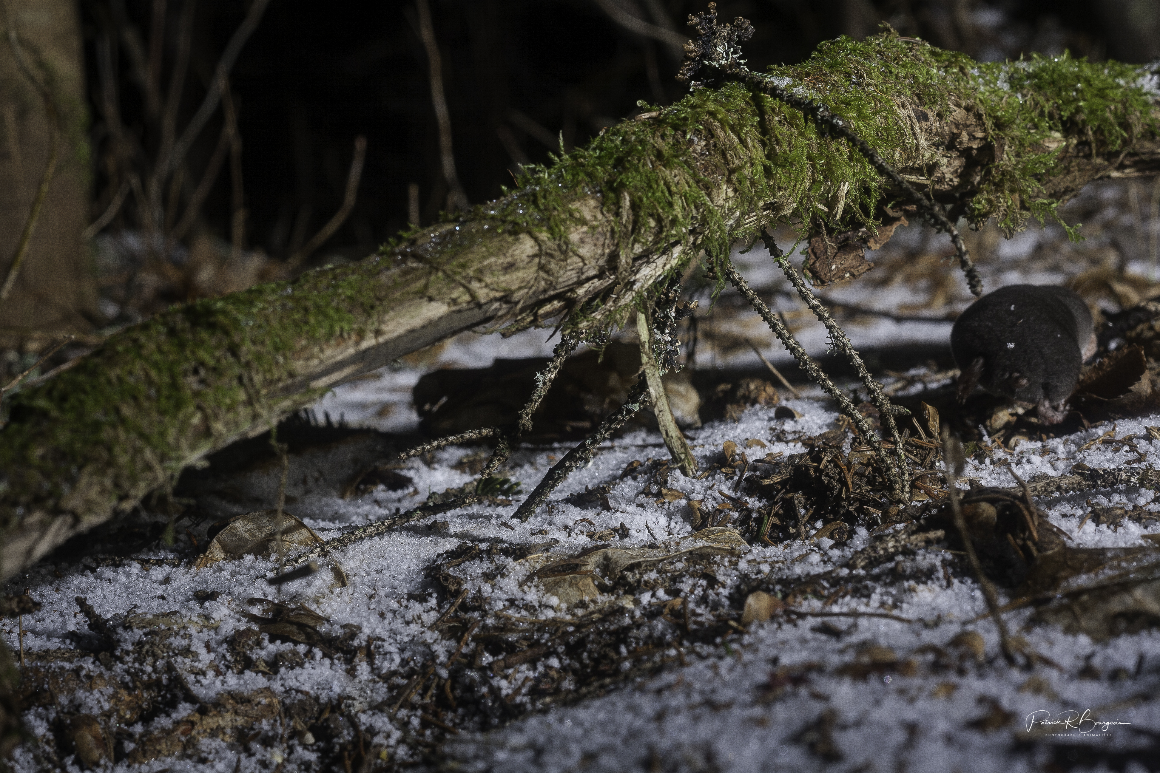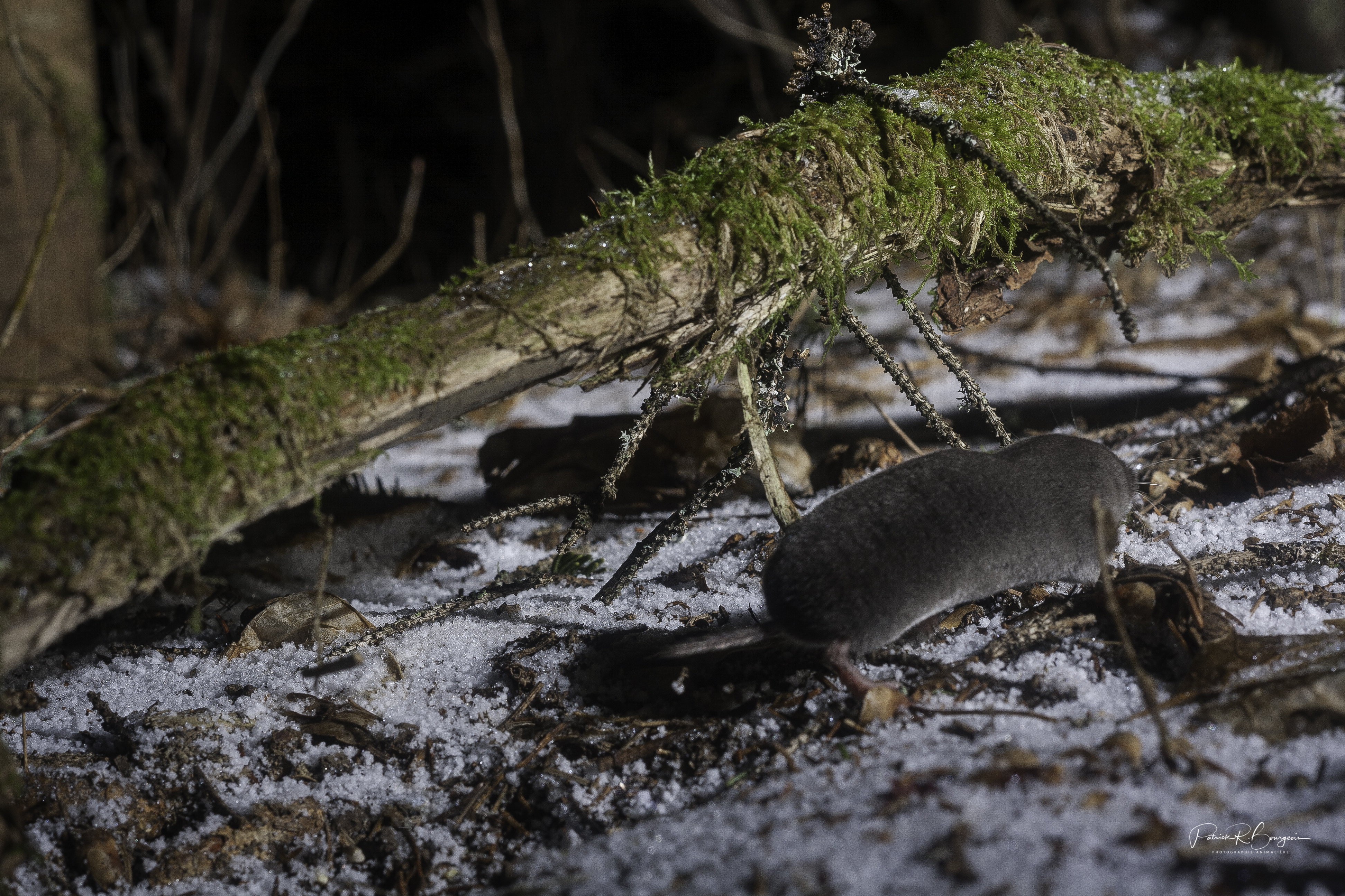 L’erreur que j’ai faite la nuit dernière, c’est de mal placer la caméra. J’ai trouvé un tunnel de musaraigne et l’angle de la caméra que j’ai choisi ne m’a permis que de photographier les sorties de l’animal. Je n’ai donc que des photos de dos, ou de fesses