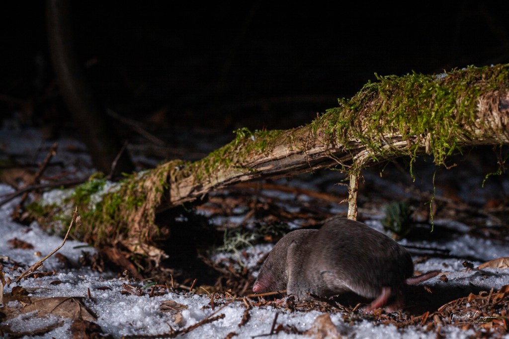 Durant la nuit d’hier, la caméra a été déclenchée un bon 200 fois. C’est dire si elles sont actives, la nuit, ces musaraignes. Et sur toutes les photos, je ne vois sa face que quelques fois, dont une seule fois correctement !