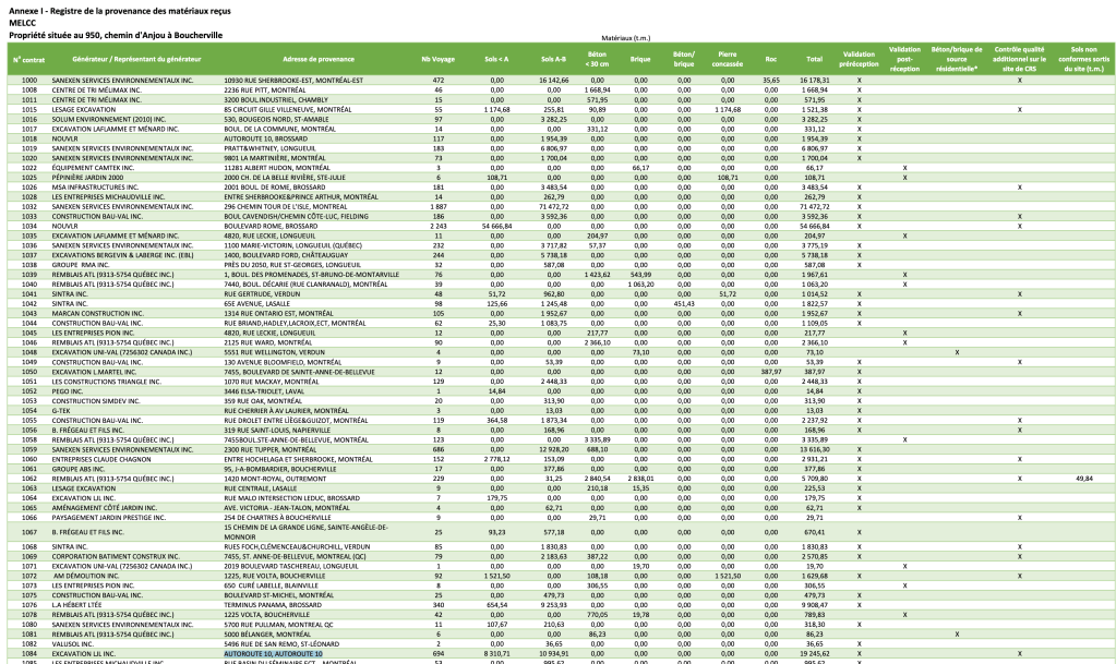Une autre source – on va l’appeler Pierrette – m’a quand même dit qu’il était possible que Sanexen ait depuis 2018 obtenu la permission du ministère de l’Environnement pour utiliser un peu de sols de qualité C afin de remplir la carrière Rive-Sud. J’ai fouillé afin de vérifier l’information. Et j’ai découvert que le plan de réhabilitation de la carrière Rive-Sud tel que soumis par Sanexen au ministère de l’Environnement du Québec avait été modifié à quelques occasions depuis 2018. Mais ces documents ne sont pas accessibles au public. Une demande d’accès à l’information devra être déposée avant de pouvoir espérer les consulter. Ces nouveaux documents indiquent peut-être que Sanexen a désormais la permission d’utiliser des sols de type C à Boucherville, allez savoir.
