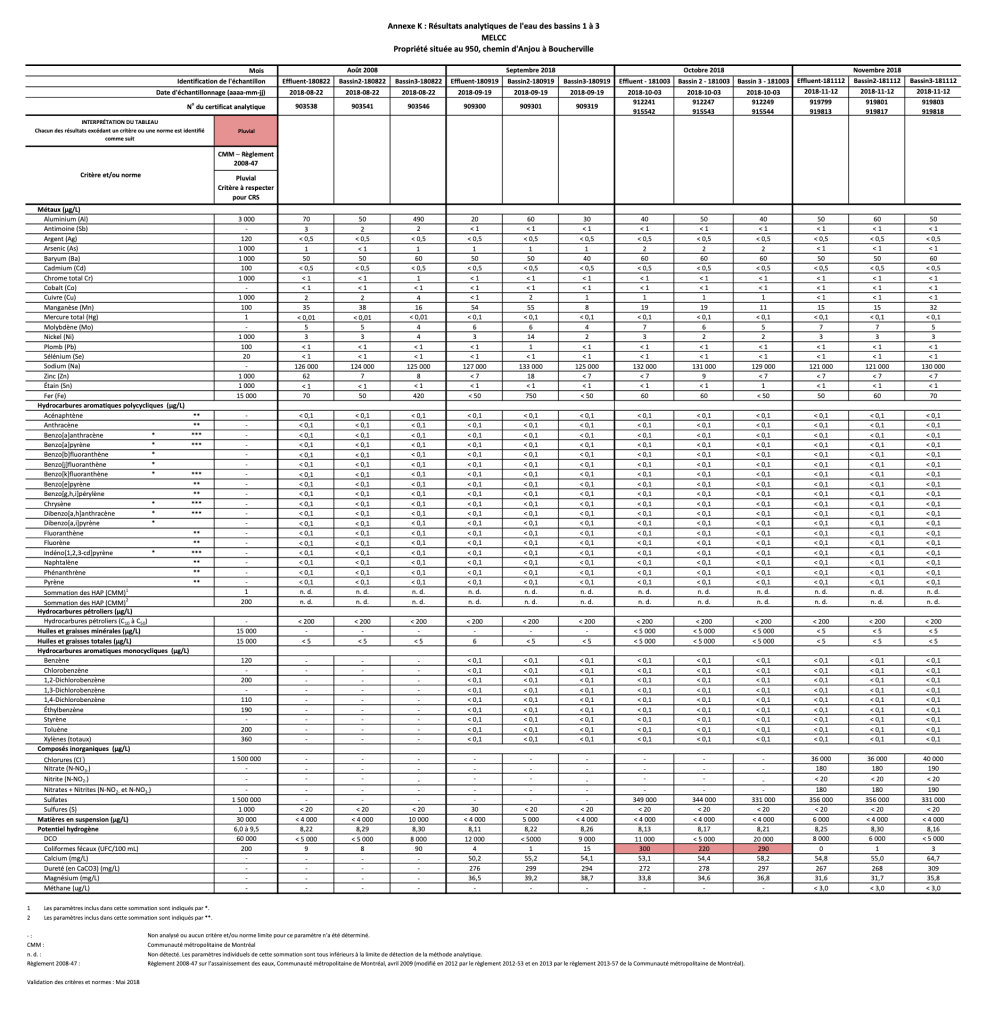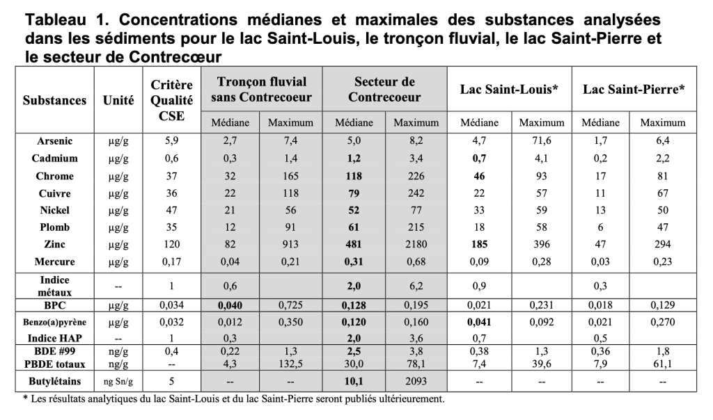 Pour l’heure, attardons-nous à deux cartes et un tableau qui prouvent que les sédiments de Contrecoeur sont, eux, très clairement contaminés, et ce, à l’endroit même où ils espèrent draguer.