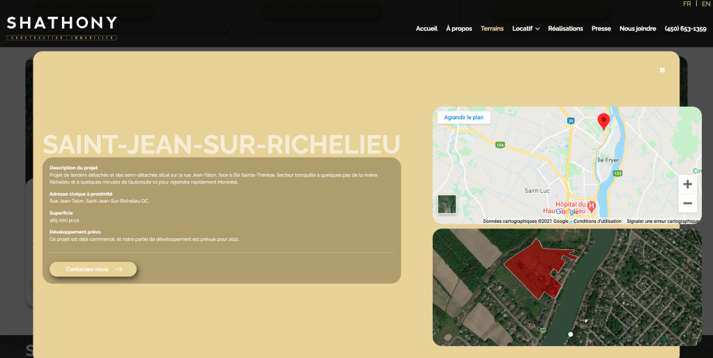 Tout cet aspect du dossier exigerait des heures de travail afin de vérifier un élément ou un autre de nature à soulever des inquiétudes. Pour l’heure, on va se concentrer sur ce qui nous saute aux yeux, sans vérifier la propriété de chacun des lots concernés et se trouvant tout près de l’autoroute 30. On va pour l’instant faire quelques vérifications sommaires, en se rendant par exemple sur le site du groupe Shathony.