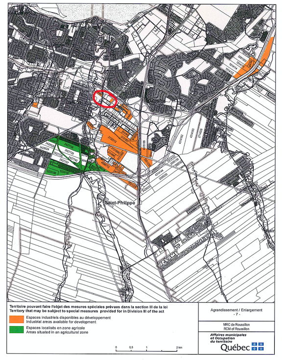 « Le projet de loi permet au gouvernement de fixer, à l’intérieur de territoires définis, des règles d’urbanisme propres à favoriser l’implantation d’entreprises du secteur de la logistique. Il permet également au gouvernement d’établir, à l’égard de ces mêmes territoires, des règles dérogeant à la Loi sur la protection du territoire et des activités agricoles. »