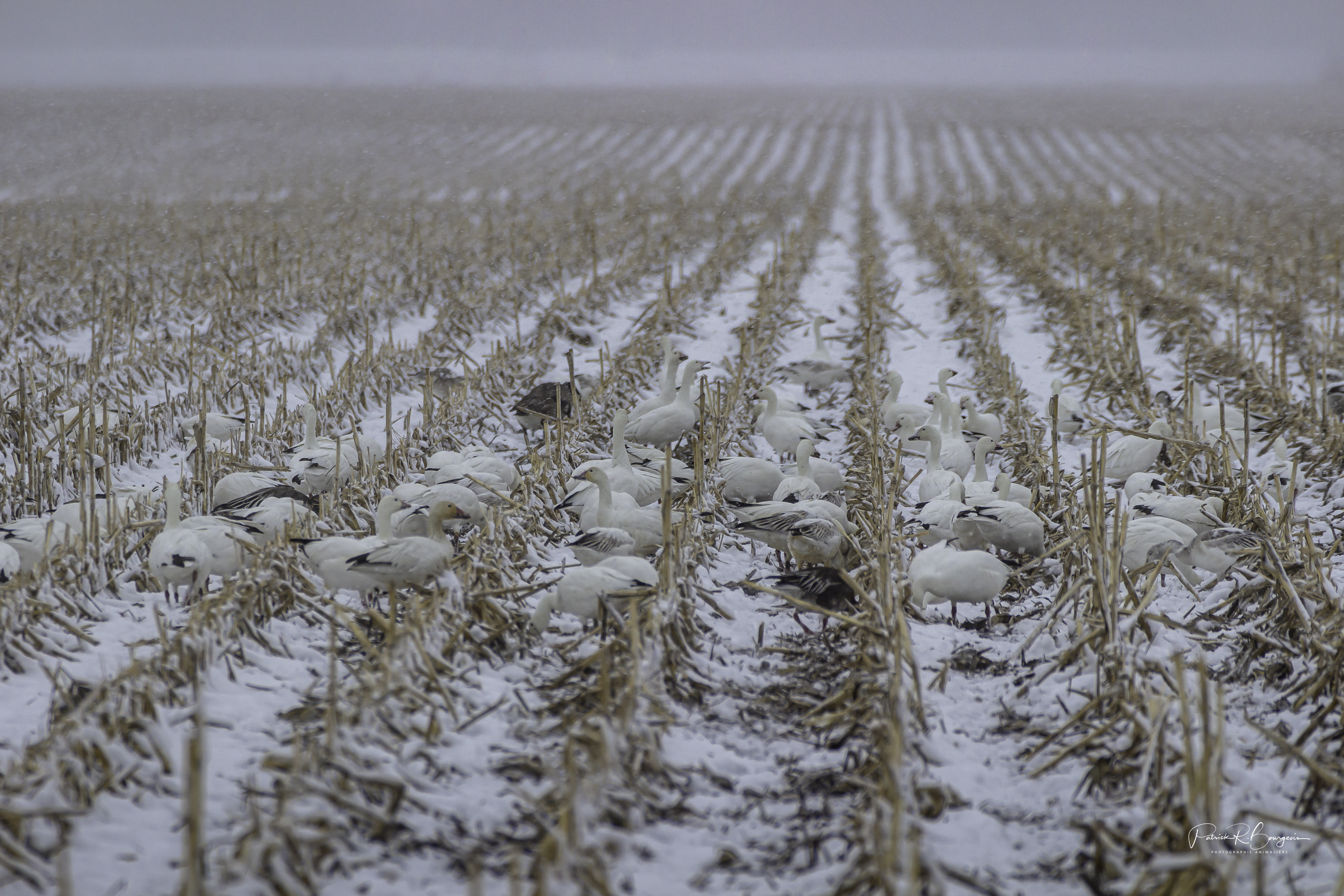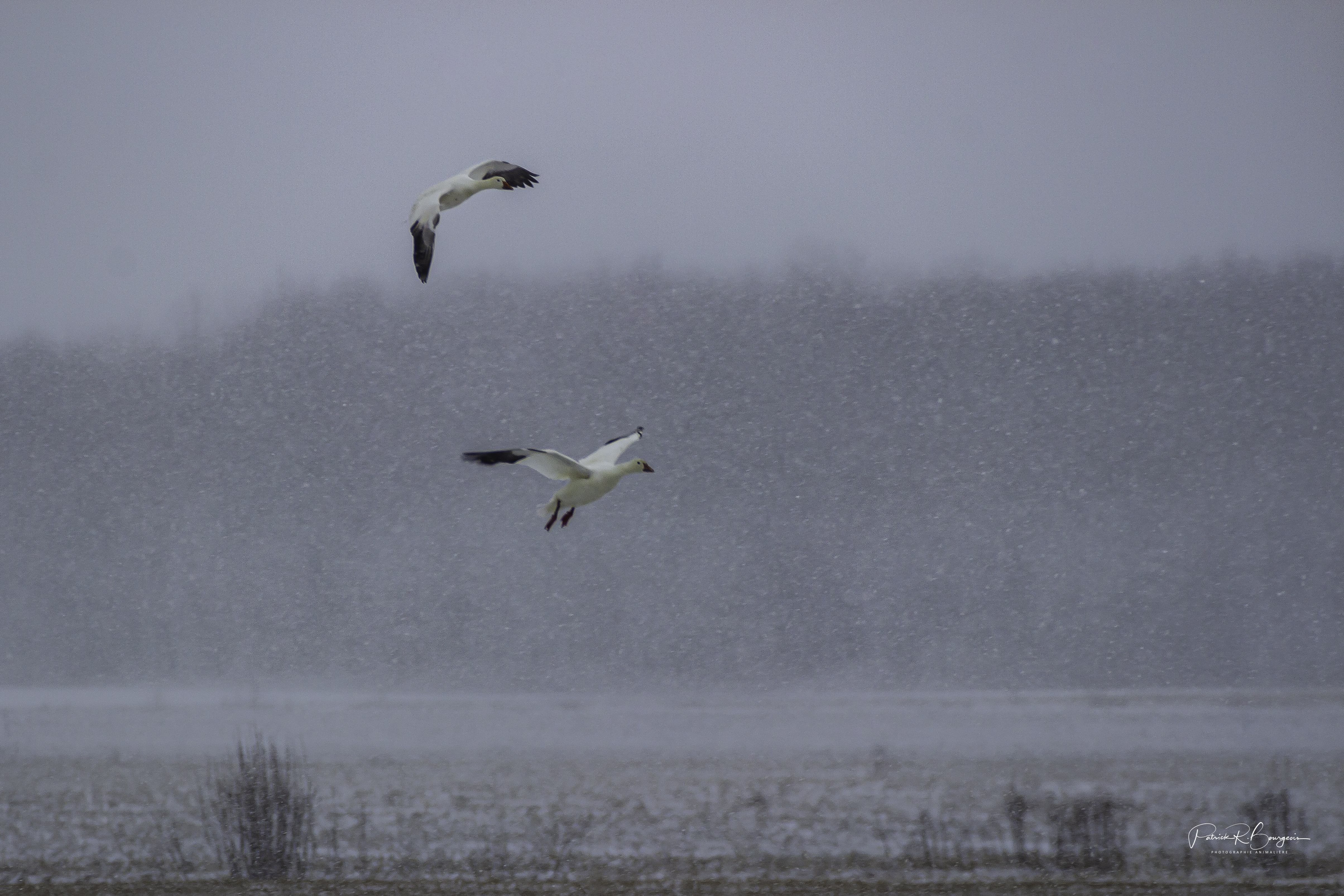 J’en ai profité pour aller faire quelques images de cet oiseau migrateur impressionnant. Des oies des neiges…dans la neige! Je trouvais ça concept ;)