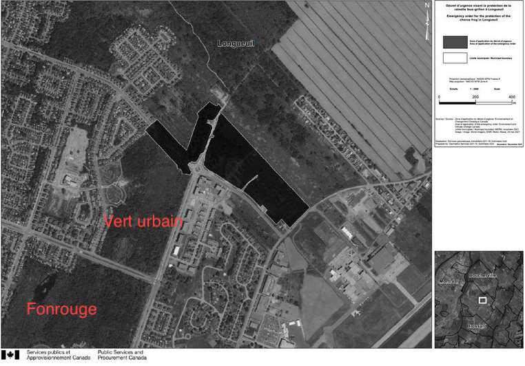 Pour bien faire les choses, les secteurs du Vert-Urbain et de Fonrouge sur la même carte auraient dû être inclus dans le décret. Ce sont là les deux dernières sites où on trouve encore des populations saines de rainettes faux-grillon.