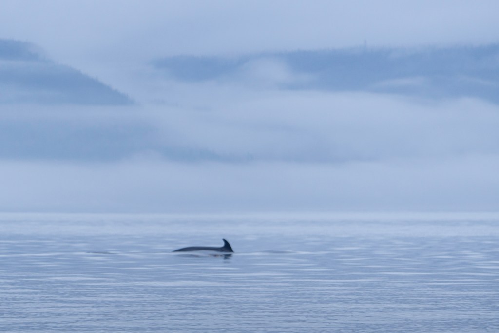 Des dizaines de petits rorquals se trouvaient réunis sur un site afin de s’alimenter. On les voyait faire surface un peu partout autour de nous. Certains étaient assez loin alors que d’autres se trouvaient tout juste à côté de nous.