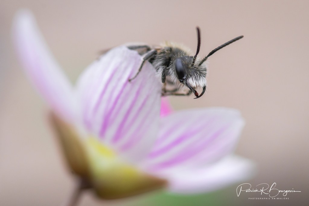 Il y a quelques années, j’allais faire des photos à cet endroit et je revenais avec des centaines de clichés à la fin de la journée. Aujourd’hui, voici le seul insecte que j’ai pu photographier. Une petite abeille indigène trônant au sommet d’une claytonie.
