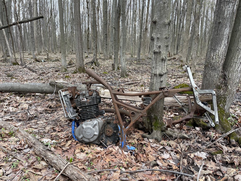 Il faut dire que l’endroit où je me rends pour observer les fleurs sauvages est assez éloigné du dépôt à neige. Et assez éloigné aussi du sentier public. Dans les circonstances, c’est un lieu un peu préservé. Je dis ça, et en même temps je me dois d’ajouter que des hurluberlus se rendent dans ce coin-là aussi pour y faire des feux de camp!!! D’autres chassent le cerf de Virginie!!! Alors que certains y jettent des détritus. Hier, j’ai d’ailleurs découvert une nouvelle carcasse de motocyclette tout juste à côté de la butte aux fleurs sauvages.
