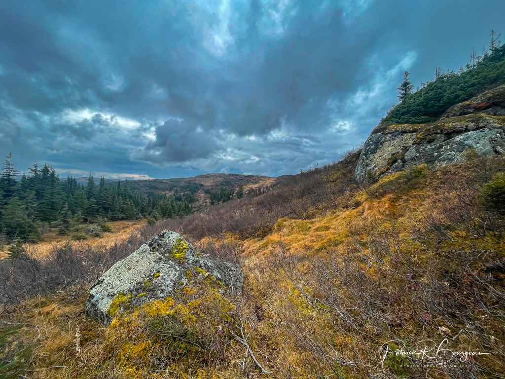 À 1000 mètres d’altitude, au milieu d’un immense paysage à perte de vue, je rencontrai une douce brise pour me caresser le visage. Mes tympans y vibrèrent aux chants mélodieux des mésanges nordiques qui souhaitaient ainsi annoncer leur présence aux alentours. Je plongeai mes mains dans la tourbe qui se trouvait tout partout. Pour en faire jaillir une eau pure, prête à boire. Et c’est alors que j’imaginai une harde de caribous défilant au sommet qui s’imposait tout juste devant moi.